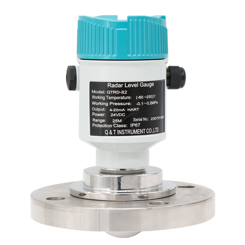 Q&T QTRL 80GHz Smart Radar Solid Level Sensor for Cement/Coal Silo Tank 0.2% Accuracy IP67 Protection RS232 Communication 24VDC